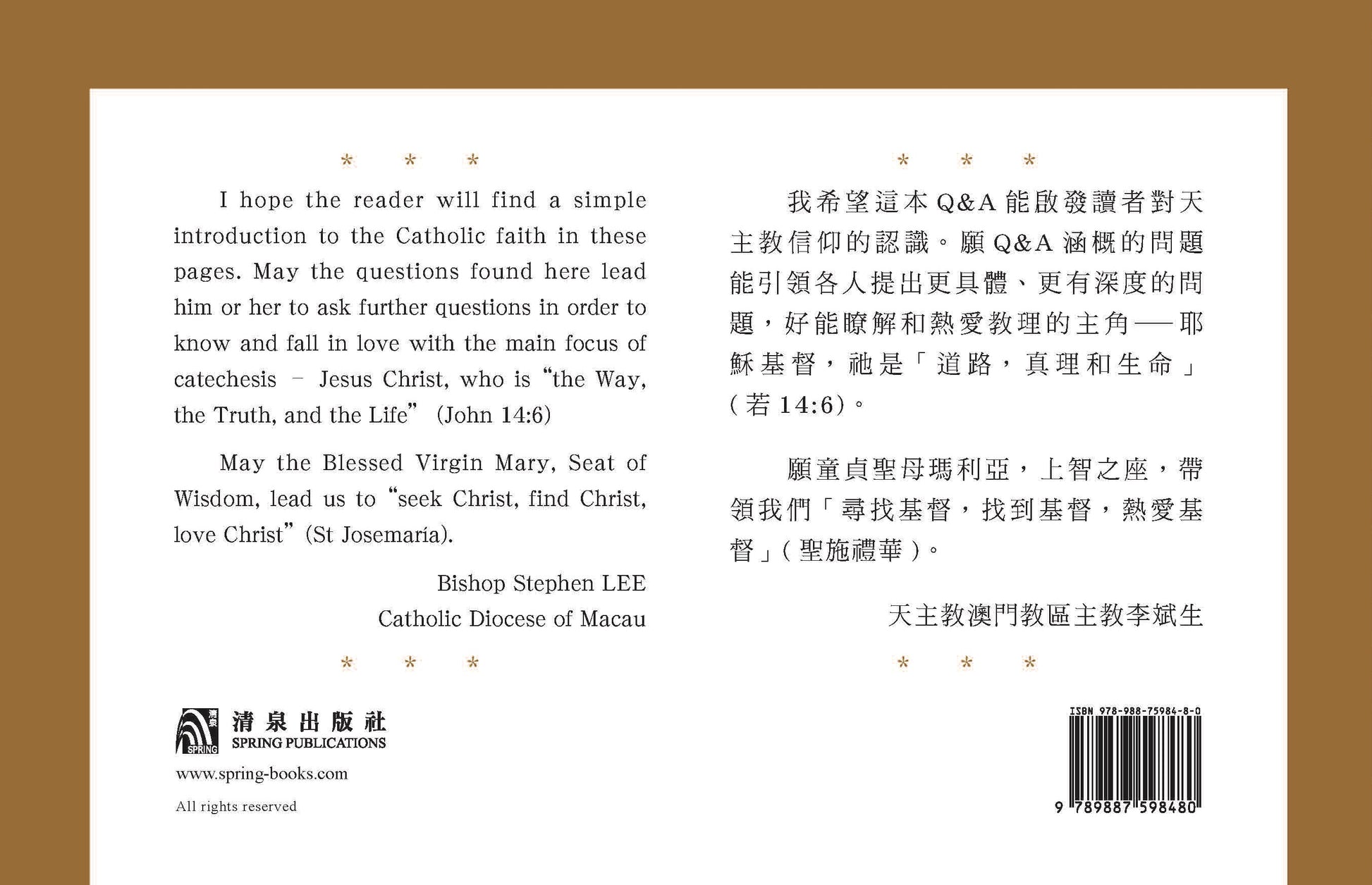 我希望這本Q&A能啟發讀者對天主教信仰的認識。願Q&A涵概的問題能引領各人提出更具體、更有深度的問題,好能瞭解和熱愛教理的主角──耶穌基督,祂是「道路,真理和生命」(若14:6)。